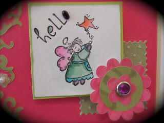 The Angel card was made with one of the cuttlebug border die cuts and tiny pearl embellishments . I love the Pink and Green combination, reminds me of watermelon's which I absolutely love in the summer time with Feta cheese. So typically Turkish !! Love it.